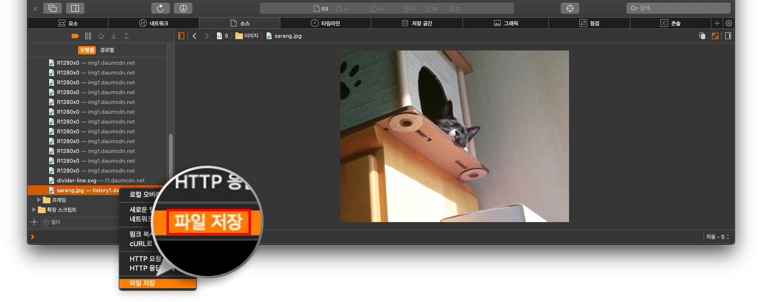 좌측 상단에 프로필 사진인 고양이 사진을 다운로드해 보겠습니다. ▲