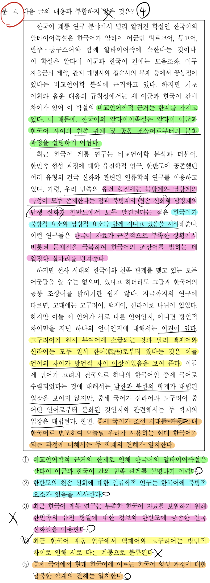 필자는 지극히 평범한 수험생으로 주관적인 입장에서 생각한 답의 근거를 지문에 표시하였습니다. 참고만 해주세요.